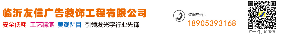 臨沂市友信廣告裝飾工程有限公司是一家從事LED外露發光字制作、外漏LED銃孔發光字、臨沂亞克力發光字、不銹鋼發光字、霓虹燈、銅字標牌、樹脂字、樹脂發光字、環氧樹脂發光字等發光字,所以說臨沂發光字行業比較有優勢,是不銹鋼字牌、鈦金字牌、金箔字、貼金字、水晶字、不銹鋼燈箱字、LED燈箱字、發光燈箱牌、以及鋁合金導向牌、弧面標牌等設計與施工的公司。